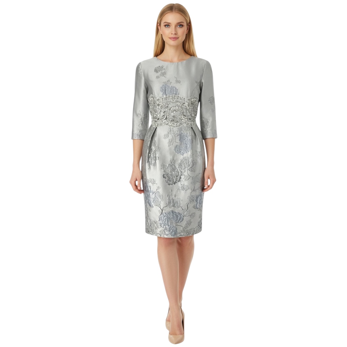 Jacquard floral silver dress Size XL